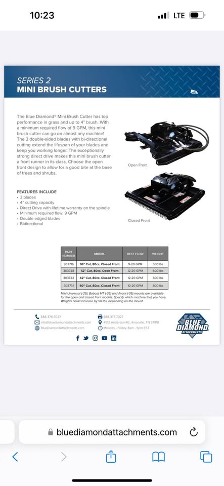 Blue Diamond mini skid steer brush mowe
